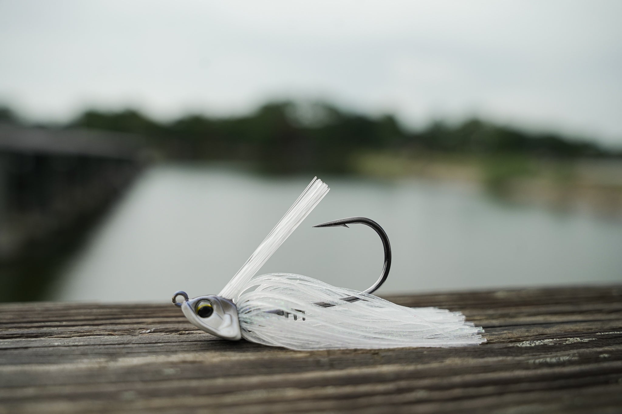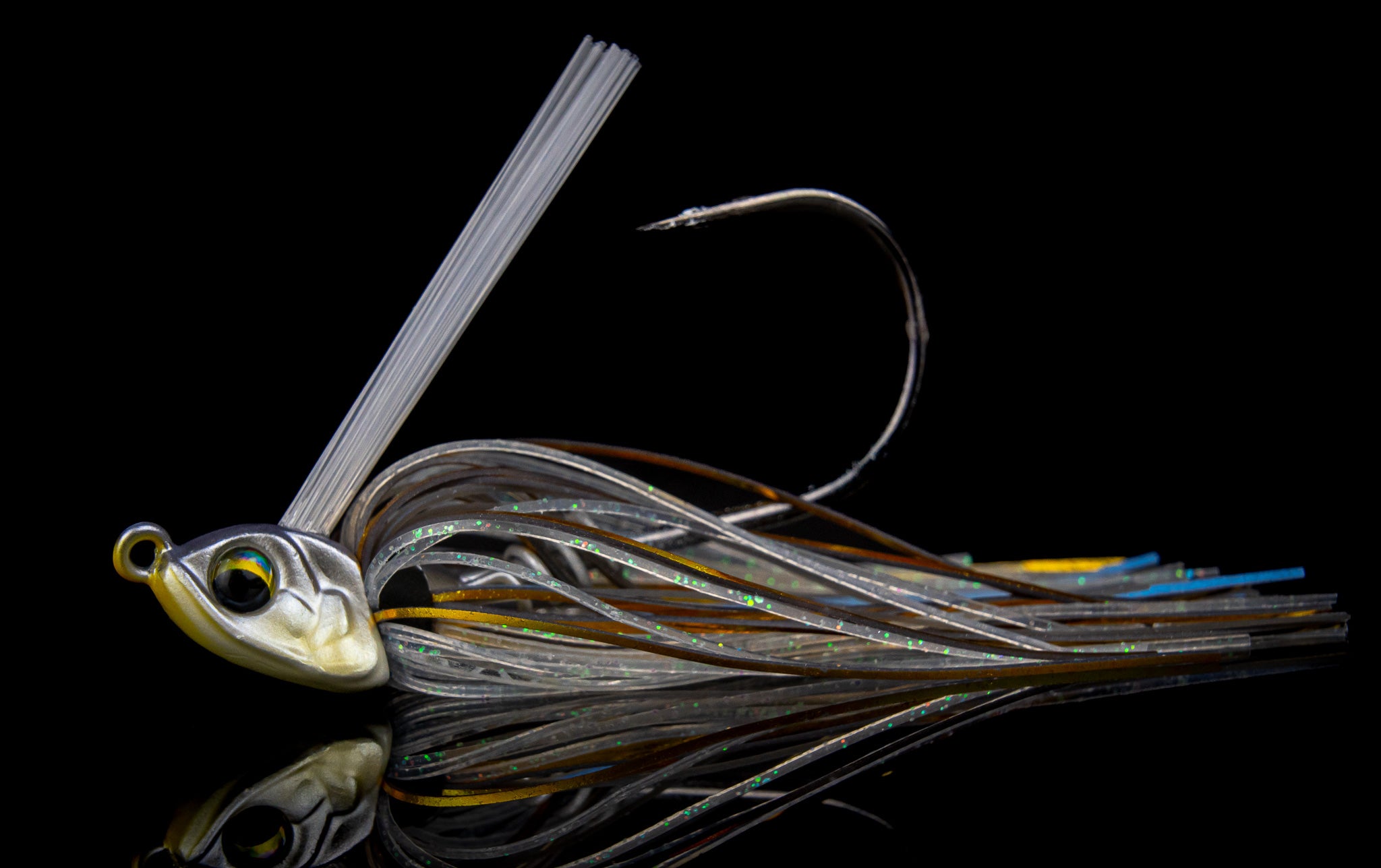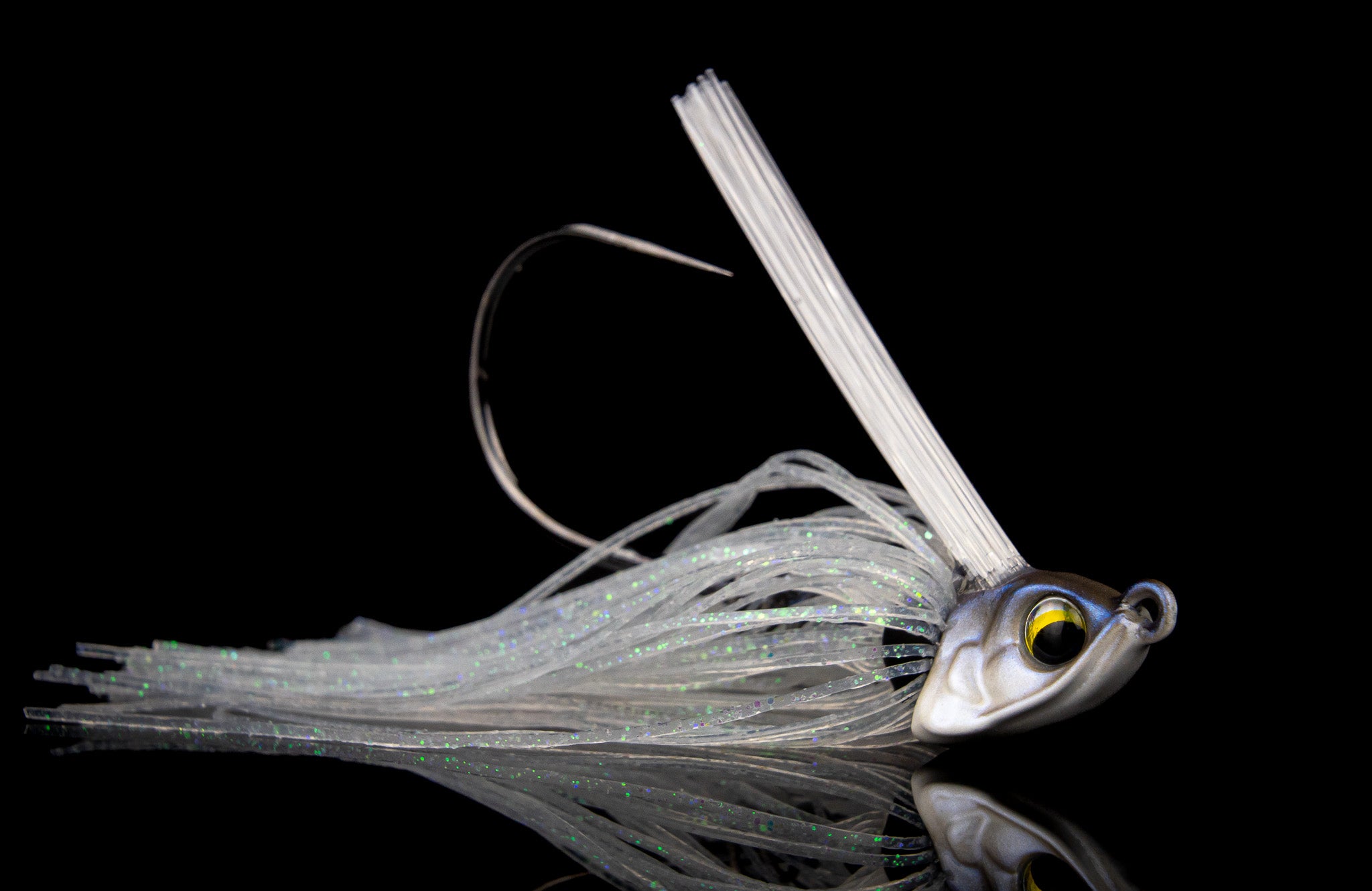 This jig can be dragged, swam, stroked, or flipped and retrieved through rocks, trees, bushes and grass with ease. The semi-flat, keel weighted belly of the head was designed to create a secondary swimming action and also ensure the ability to skip under docks or willows. The wide tapered points of the outside of the head will help deflect cover and also help maintain posture, giving it the ability to lie flat on the bottom (which makes for the perfect bed fishing jig).