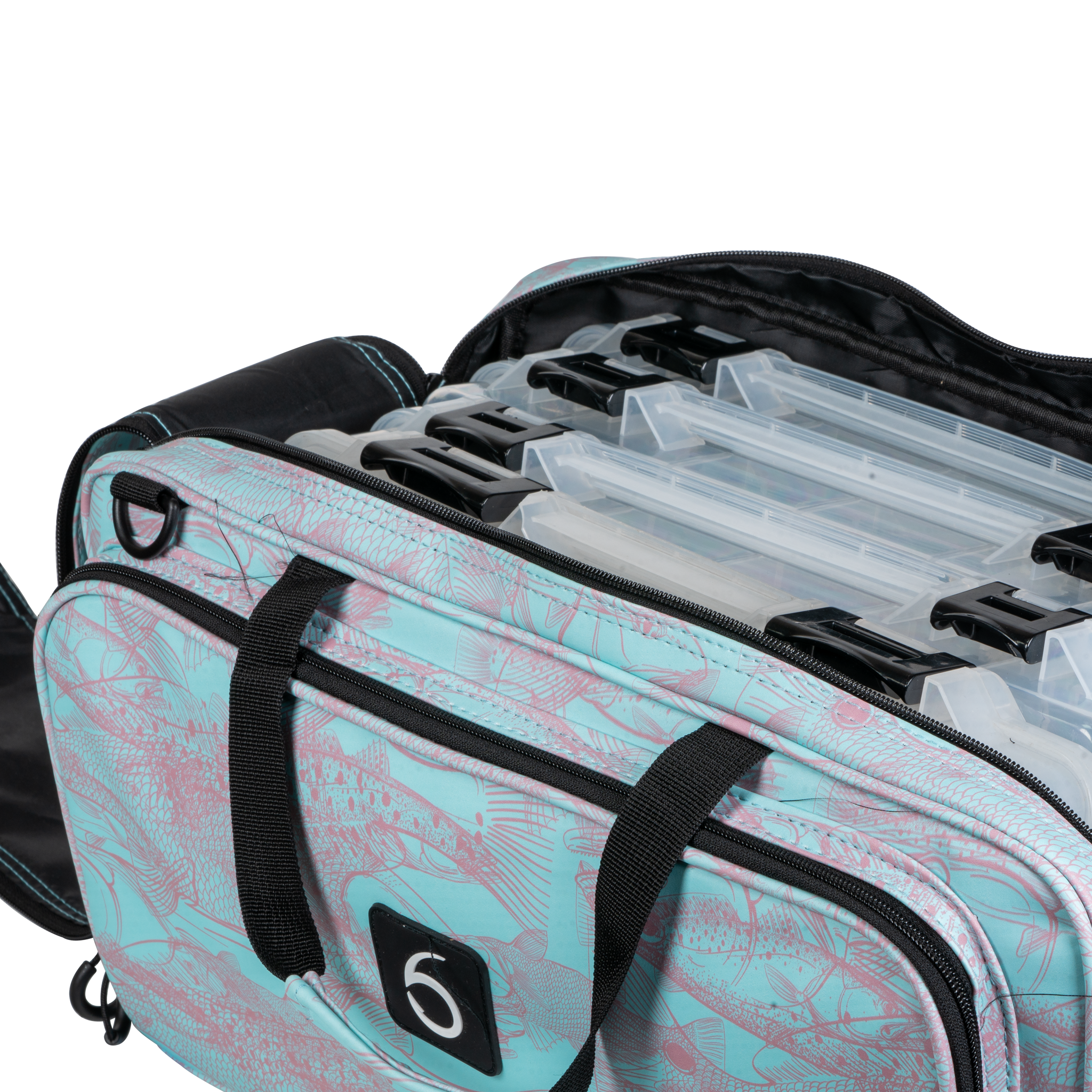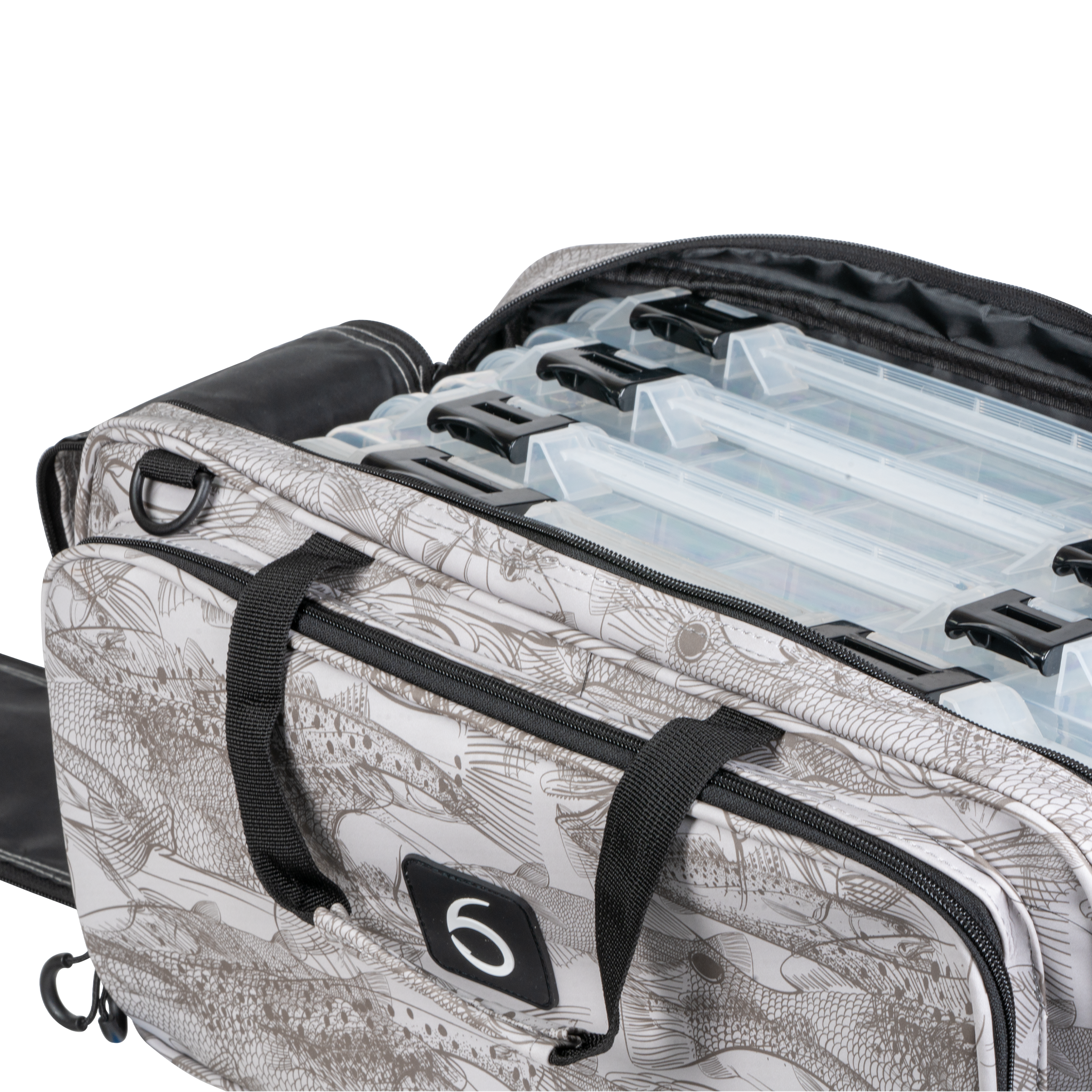 Smart Storage System – Multiple compartments with mesh organizers, zippered pockets, and dividers keep gear, tackle, and essentials neatly arranged.